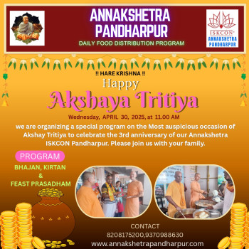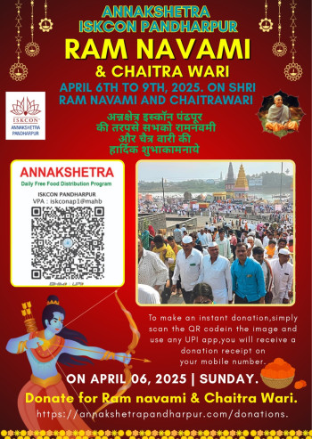 कार्तिक वारी भव्य अन्नदान सेवा अन्नक्षेत्र, इस्कॉन पंढरपुर के लिए कार्तिक मास में अन्नदान सेवा के लिए दान देना आध्यात्मिक...