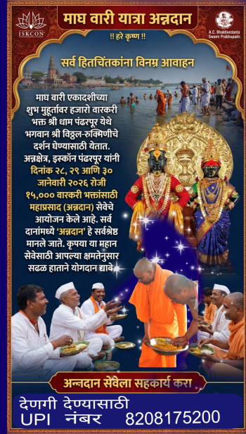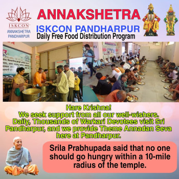 हरे कृष्ण!हम सभी शुभचिंतकों से सहयोग का अनुरोध करते हैं।हर दिन, हज़ारों वारकरी भक्त और तीर्थयात्री श्री क्षेत्र पंढरपूर आते...